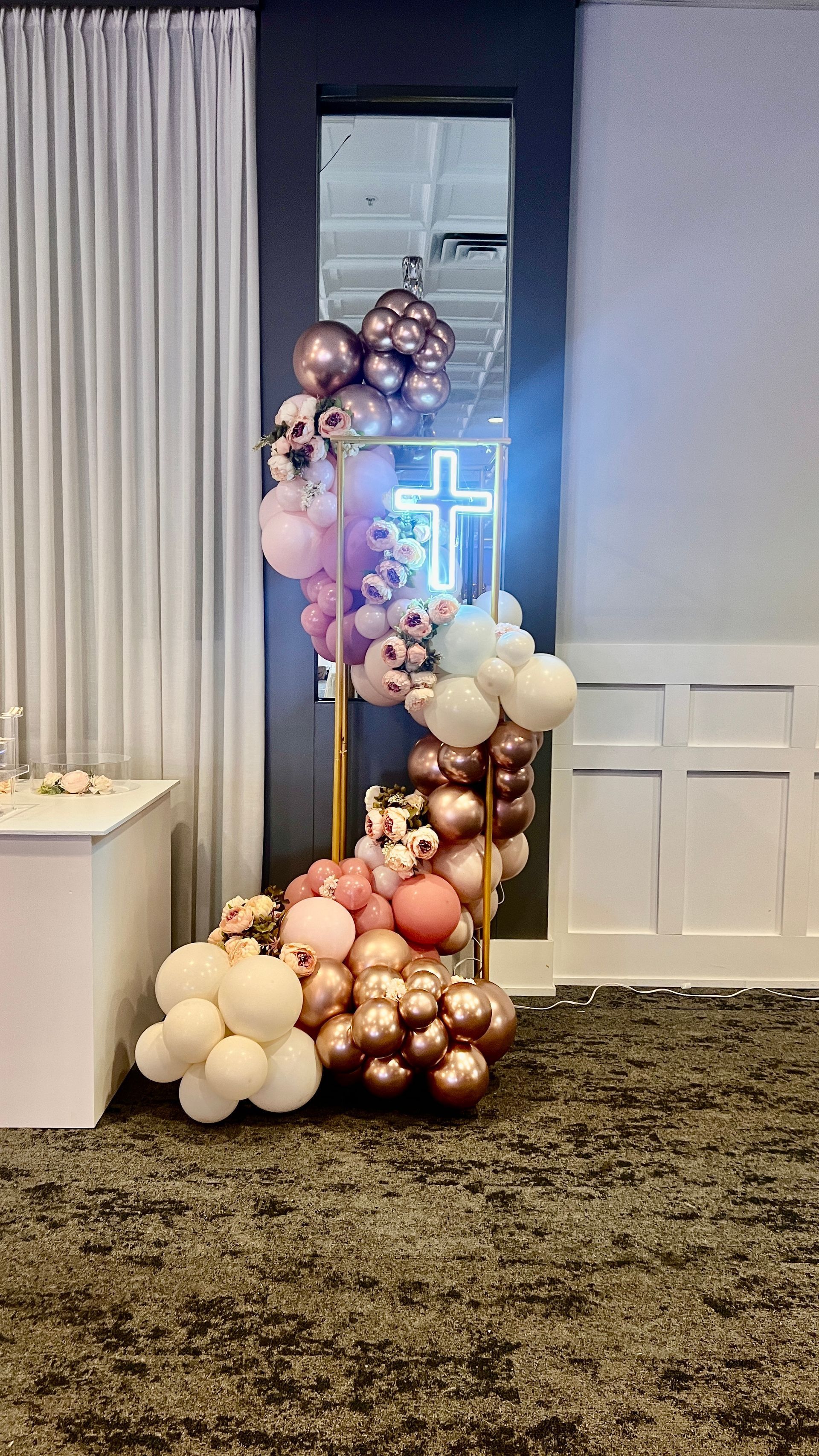 Elegant balloon arrangements and backdrops add a meaningful touch to your special moments